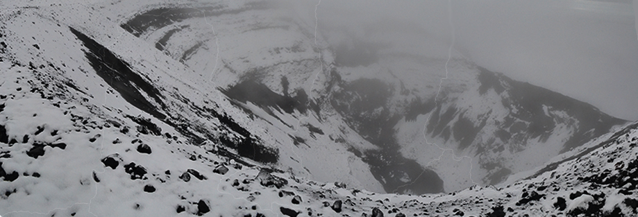 In the middle of the night, guided by the light of the full moon, we set out for the summit. But Chimborazo, jealous and fierce, blew his strongest kisses to his precious lady, covering us in an intense blizzard with gale-force wind and horizontal snow. Our headlamps would shine only as far as each other’s backpacks, but after five hours of ascent through the stormy night we finally reached the crater at daybreak. Conceding his defeat, Chimborazo dropped his attacks and the weather cleared to finally reveal Tunguraha’s glaring beauty.